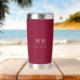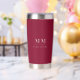 Burgundy background colour. Personalise and add your monogram initials and full name. White text. For both him and her.
