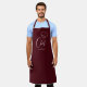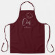 Custom chef apron feature cute chef script and hat with personalised name on burgundy red background. Great personalised chef apron.