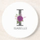 Burgundy Dahlia Floral Alphabet Letter Monogram Coaster