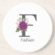 Burgundy Dahlia Floral Alphabet Letter Monogram Coaster
