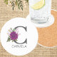 Burgundy Dahlia Floral Alphabet Letter Monogram O Coaster