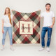Burgundy, Dark Gray and Tan Plaid Personalized Fleece Blanket | Monogramed