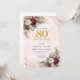 Burgundy Deep Red Floral Gold 80th Birthday Invitation