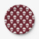 Burgundy Deep Red Skull Pattern Spooky Halloween Paper Plate