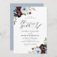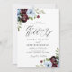 watercolor burgundy and dusty blue flowers with a gold frame and elegant text. The colours and text can be personalised.