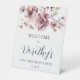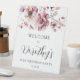 Burgundy Dusty Pink Floral 60th Birthday Welcome Pedestal Sign