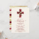 Burgundy Elegant Glitter Floral Cross Baptism Invitation