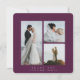 Burgundy Elegant Square Three Photo Wedding Thank You Card