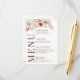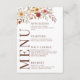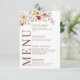 Enhance the charm of your romantic rustic botanical fall wedding celebration with this sophisticated and polished menu card. Featuring an intricate brown, terracotta and burgundy flower bloom wreath with simple minimalist calligraphy script.