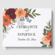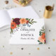 Simple modern design features autumn garden florals in colours of burgundy, orange and green leaves with customisable text. Personalise the template with your desired wedding details, fonts etc.