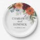 Burgundy Fall Garden Floral Wedding Paper Plate