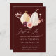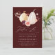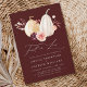 This wedding invitation features watercolor white and yellow pumpkins adorned with burgundy, maroon, and blush pink flowers over fall leaves. For more advanced customisation of this design, Please click the "Customise further" link. Matching items are also available.