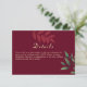 Share important information with your guests using this elegant fall wedding details card. Designed with a deep burgundy background, greenery accents, and classic gold script, this card is perfect for autumn and winter weddings.