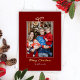 Simple and sweet, this Christmas holiday photo card features handwriting style fonts and modern simple bow graphic in shiny metallic foil to celebrate the season in on-trend and modern style. Your portrait orientation photo is framed by a thin red line over seasonal greeting and family name text with space for a longer, in-depth message of cheer on the back.