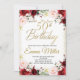 Burgundy Floral and Gold Surprise 50th Birthday Invitation