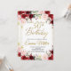 Burgundy Floral Women 50th Birthday Invitation, Red Floral And Gold, Surprise invitation.