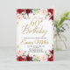 Burgundy Floral Women 60th Birthday Invitation, Red Floral And Gold, Surprise invitation.