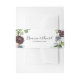 This burgundy floral and greenery wedding invitation belly band is perfect for a winter wedding. The elegant boho design features watercolor navy, blush pink and wine shade flowers with artistic penciled details.