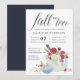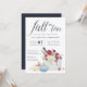 Fall in love with these rustic elegant autumn bridal shower invitations. Design features two pastel watercolor pumpkins decorated with lush burgundy watercolor flowers and boho feathers. "Fall in love" appears across the top in chic calligraphy script lettering. Personalise with your bridal shower and registry details beneath in rich navy blue lettering.