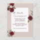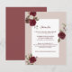 Moody floral wedding details card for a romantic autumn wedding, designed in a fine art watercolor aesthetic with burgundy dahlia blooms and soft vintage botanical tones. Perfect for the elegant, slightly gothic modern bride who loves deep red wine palettes. Style with handmade paper, silk ribbon, or vellum overlays for a refined layered suite.