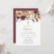 Invite your guest with our elegant and modern burgundy floral baptism/christening invitation features watercolor burgundy floral. Personalise with your event details in simple layout and elegant handwritten style font.