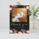 Burgundy Floral Black Gold Photo Wedding Thank You
