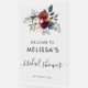 Burgundy Floral Bloom Script Bridal Shower Acrylic Sign
