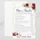 Burgundy Floral Bridal Shower Game, Wedding Shower