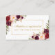 Bridal Shower Watercolor Floral Burgundy and Gold Registry Insert Card - Burgundy Back