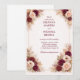 An elegant and timeless design featuring rich burgundy and blush floral arrangements complemented by soft beige tones. The composition is framed with delicate botanical clusters in each corner, creating a balanced and refined look. The combination of classic typography and romantic florals evokes sophistication, warmth, and a graceful, nature-inspired aesthetic.