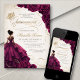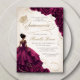 Burgundy Floral Dress Quinceañera Invitation