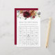 Burgundy Floral Fun Bridal Find the Guest Bingo