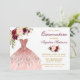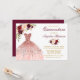 Burgundy Floral Glitter Dress Gold Quinceanera Invitation