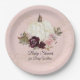 Burgundy Floral Gold Blush Baby Shower Pumpkin Paper Plate