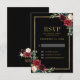 Burgundy Floral Gold Frame Navy Blue Wedding RSVP Card