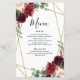 Burgundy Floral Gold Geometric Greenery Menu Cards