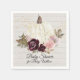 "Burgundy Floral Gold Pumpkin Baby Shower Wood Napkins Paper Party Decor." Light white cottage wood background with blush pink rose floral with gold glitter stars that swirl around the white pumpkin, muted earth tone leaves, burgundy and blush pink peonies and roses. Most of the art was hand painted in watercolor by Audrey Jeanne Roberts. Complete set available to coordinate. Copyright.