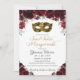 Burgundy Floral Gold Sweet Sixteen Masquerade Mask Invitation