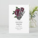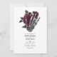 Whimsical vintage floral gothic skeleton hand wedding invitation in accents of burgundy and black customisable to your event specifics. Ideal for any given theme or garden wedding. The QR code on the reverse directs to your wedding site where people can learn more and rsvp.