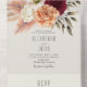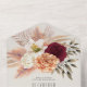 This romantic all-in-one wedding invitation features hand-painted burgundy and peach florals with soft greenery, blush pampas grass, and warm neutral tones—perfect for fall, rustic, or boho weddings. It includes a built-in RSVP, wedding website space, and room for a personalised return address and photo on the back. A stylish, eco-friendly option for modern couples. Please note: A separate envelope is required for mailing.