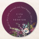 Burgundy Floral Happily Ever After Quote Wedding Round Paper Coaster