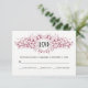 Burgundy red and white floral heraldic crest wedding RSVP response card. It showcases a heralded crest with flowers. The back includes a burgundy red and white polka dot pattern.