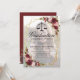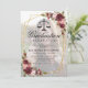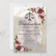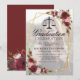 Elegant law school graduation party invitations featuring a faded photo of the graduate, an array of marsala red, burgundy & blush pink watercolor floral flowers, a gold glitter geometric shape, and a modern class of 2025 graduation template that is easy to personalise.