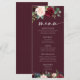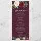 Boho Burgundy and Blush Wedding Menu Card. This menu card is chraacterised by boho burgundy and blush roses and flowers with two modern high-class fonts that shape the trends of the present and future festive events.