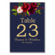 Burgundy Floral Navy Blue Elegant Script Table Number