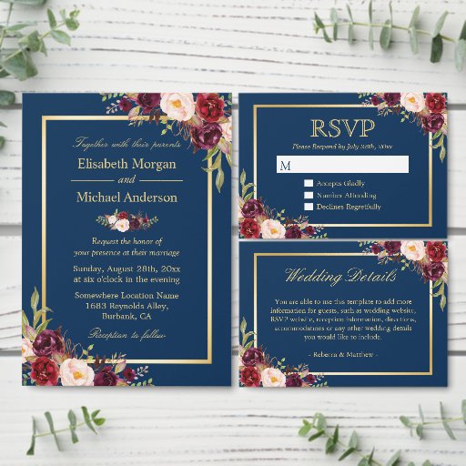 Invitation Suite: Burgundy Red Floral Navy BlueDesigned by Scott C.
