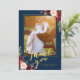 Burgundy Floral Navy Blue Gold Photo Wedding Thank You Card