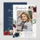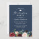 Burgundy Floral Navy Blue Photo Graduation Party Invitation