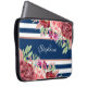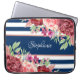 Burgundy Floral Navy Blue Stripes Personalized Laptop Sleeve