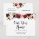 This modern, burgundy floral, new home, moving announcement, change of address postcards (with card title, Our New Home Address). It s the perfect way to announce to your friends and family, that you have moved.